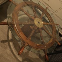 Vintage Rotating Nautical Wheel Coffee Table with Thick Clear Glass Top$250Huntington Beach, CA