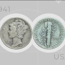 1941 Mercury Dime also known as the Winged Liberty Head Dime, NO MINT MARK ERROR - G - 4$1,200Irvine, CA