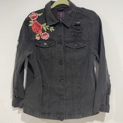 Boom Boom Jeans Womens Large Embroidered Destroy Denim Jacket Black Pockets$20Fountain Valley, CA