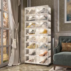 code Thicken & Sturdy Clear Shoe Storage Organizer with Magnetic Door, Stackable Boxes for Closet, Foldable Shoe Rack for Sneaker Boot Container, $40Lakewood, CA