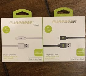 Two New PureGear 4Ft And 6 Ft Lightning Cables For Apple iPhones Black or White$13Fullerton, CA