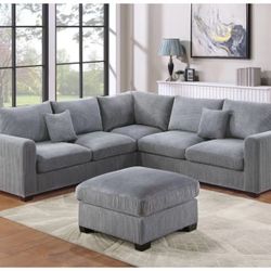 4-pc Sectional Sofa With Ottoman Grey Corduroy New$490Norwalk, CA