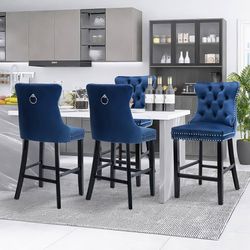 Modern Velvet Upholstered Bar Stools Set of 4 with Wood Legs, Button Tufted,Chrome Nailhead, Counterstool Seat, Armless Bar Chairs (Blue)$199El Monte, CA
