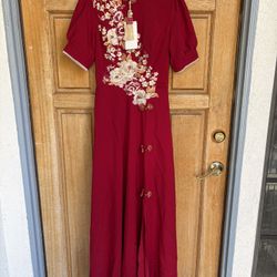 Chinese Modern Qipao 新中式旗袍 Dress Red Embroidered Cheongsam Wedding 中式婚礼Bride新娘礼服small $49City Of Industry, CA