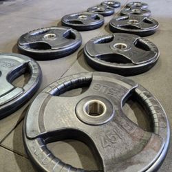 🔘 COMPLETE EASY GRIP OLYMPIC WEIGHT SET PAIRS OF 45s, 35s, 25s, 10s, 5s ( BRAND NEW IN THE BOX )$375Bellflower, CA