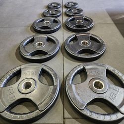 🔘 COMPLETE EASY GRIP OLYMPIC WEIGHT SET PAIRS OF 45s, 35s, 25s, 10s, 5s ( BRAND NEW IN THE BOX )$375Bellflower, CA