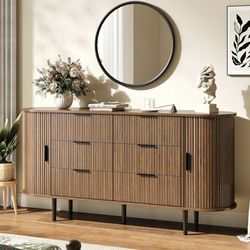Fluted 6 Drawer Dresser, 63" Wide Modern Chest of Drawers with Metal Handle, Curved Edge Design, Wood Storage Credenza Cabinet for Bedroom,Living Room$140El Monte, CA