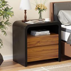 24 inches Black Modern Nightstand, Bedside Table with Curved Anti-Collision Design, Large Night Stand with 2 Storage Drawers and Open Wood Shelf for B$70Rosemead, CA