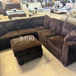 Beautiful! Sectional Sofa With Ottoman Dark Chocolate Fur-like Jumbo Corduroy New$499Pico Rivera, CA