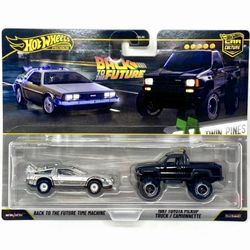 2026 Hot Wheels Premium Car Culture 2 Pack Back To The Future Time Machine And 1987 Toyota Pickup Truck 1:64 Scale Real Riders Metal/Metal BTTF$30San Pedro, CA