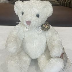 White, jointed, curly-furred Vermont Teddy Bear with a decorative brooch.$25Anaheim, CA