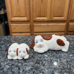 Vintage Ceramic Hand Painted Dog and Puppies Pair of Salt and Pepper Shakers. Made in Korea stickers on the bottom. Brand Whimsy Kitschy. Has bee$20Artesia, CA