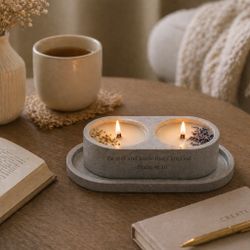 Handmade Concrete Candle Gift Set – White Tea | Scripture Decor | HULUVA$30Arcadia, CA