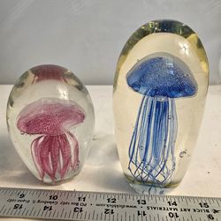 Vintage Cobalt Blue and Beach Pink Jellyfish Paperweight Clear with Bubbles Inside$15Irwindale, CA