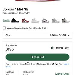 Jordan 1 Mid Fearless Edison Chen CLOT$195Gardena, CA