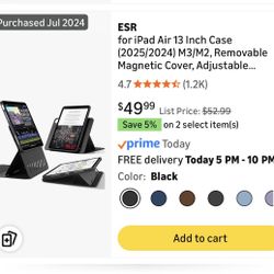 ESR iPad Air 13” Case With Removable Magnetic Cover And Adjustable Height$20Irwindale, CA