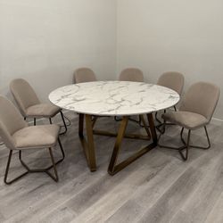 59 1/4” Faux Marble Dinning Room Table W/6chairs $550Brea, CA