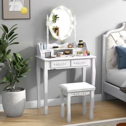 Girls Vanity Table with Lighted Mirror and Stool, 10 Dimmable LED Lights, 3 Color Lighting Modes, 4 Drawers, Rose-Shaped Handle, Bedroom Dressing Make$69Pomona, CA