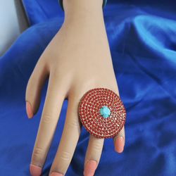 Bohemian Red JEWEL Teal Blue MANDALA Rhinestone BOHO RING ADJUSTABLE SIZE