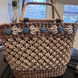 Nine West Straw Handbag Cowrie Shells & Turquoise ColorButton Accents 13x9”$12Santa Fe Springs, CA