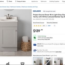 Bathroom Project Source 18 Inch Vanity With Top - Sink Para Bano $100Norwalk, CA