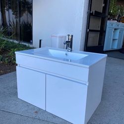 New Assembled, 30" Wall Mounted Bathroom Vanity with Ceramic Top and Sink, Storage Cabinet, Faucet Combo Set$150Fullerton, CA