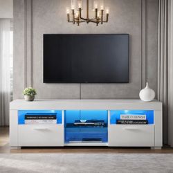 53” White Morden TV Stand with LED Lights [NEW] **Assembly Req** $100City Of Industry, CA
