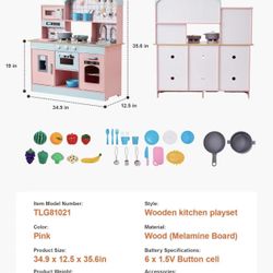 Wooden Play Kitchen Toy, Play Kitchen for Kids with Lights and Sounds, Toddler Kitchen with Ice Maker, Oven, Sink, Microwaves, Fridge and Utensil and $79City Of Industry, CA