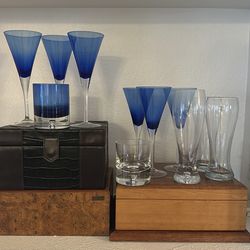 6 blue Wine glasses 3 pilsner 2 high ball$10Manhattan Beach, CA