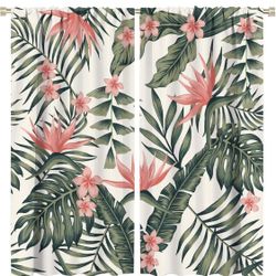 Tropical Leaves Curtains Summer Natural Green Plant Red Flower Art Print for Living Room Bedroom Bathroom Decor Rod Pocket Blackout Window Drapes 2 Pa$35Ontario, CA