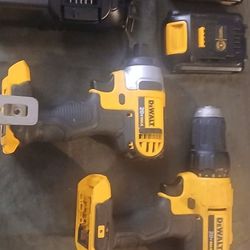 DEWALT 20V MAX Cordless Drill and Impact Driver Combo Kit, featuring two lithium-ion batteries and a charger.