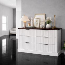 Dresser for Bedroom with 6 Fluted Drawers, 51.9" Wide Chest of Drawers, White & Walnut D-41$159Santa Ana, CA