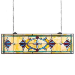 Stained Glass Window Panel, 32 x 10 in, Tiffany Style Hanging Transom Window Panel with Chain, Large Horizontal Rectangle Stain Glass, Vintage Traditi$69City Of Industry, CA