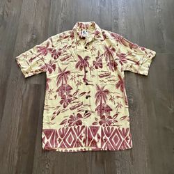 Men's Tropical Short-Sleeve Camp Shirt - Beige with Red Palm Print$30Long Beach, CA