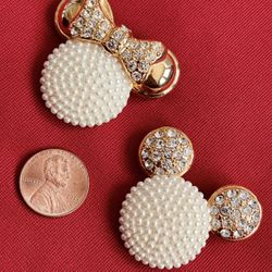 Vintage Disney Mickey & Minnie Mouse 3D icon face Gold Pearl Crystal Brooch Pin$40Seal Beach, CA