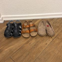 Comfy Adidas sneakers, light beige/tan color with black stripes. Has Cloudfoam cushioning, super soft. Looks like new, no wear at all. size 7 women as$60Montclair, CA
