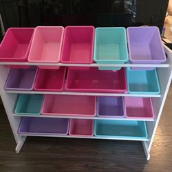 Toy Storage Organizer, 46'' Toy Shelf, Bookshelf with White and Blue Bookcase & 2 Storage Cubbies Toy Box, Toy Storage Cabinet for Playroom, B$80Santa Ana, CA