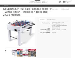 GoSport 54" Full Size Foosball Table$200Compton, CA