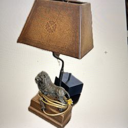 Pair of lion des lamps with wood base.$75West Hollywood, CA