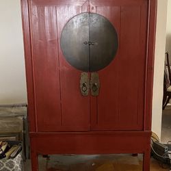 Antique Chinese Red Lacquered Wardrobe with Brass Butterfly Decor $5,000Los Angeles, CA