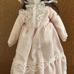 Vintage Porcelain Doll In Pink Dress, Bonnet With Lace TrimAnd Stand$20Yorba Linda, CA