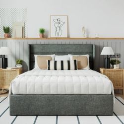 Queen Size Lift Up Platform Bed Frame with Channel Headboard, Wingback & Storage$196Ontario, CA
