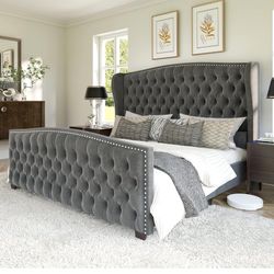 Queen Size Bed Frame with 61.4" Tall Headboard, Velvet Upholstered Wingback$350Garden Grove, CA