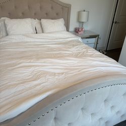 QUEEN BED FRAME SYNTHETIC LEATHER & VINTAGE BONE WHITE FINISH (AC) $1299 DELIVER AVAILABLE $1,299Pomona, CA