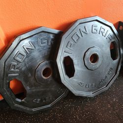 PAIR OF 45s OLYMPIC EASY GRIP RUBBER COATED IRON GRIP PLATES $160 TWO PAIRS AVAILABLE ( EXCELLENT CONDITION )$160Bellflower, CA