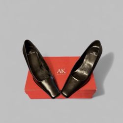 Vintage New Anne Klein Genuine Leather Black Square Toe Pumps Heels Size 6 Made In Spain $40Arcadia, CA