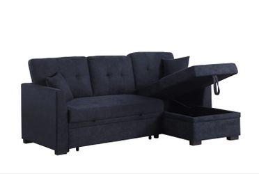 NEW Navy Blue Black L Shape Sectional with Storage Chaise and Pull out Sleeper Bed sofa sofabed Pullout Convertible Adjustable Futon Clearance SALE$399Chino, CA