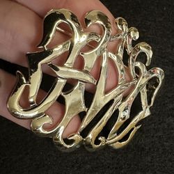 Vintage Gold tone Monogram Metal Weaved Design Brooch Pin$10Monterey Park, CA