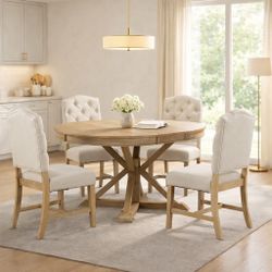 5-Pc Natural Wood Wash Dining Set - Expandable Dining Table + 4 Natural Wood / Beige Upholstered Dining Chairs [NEW] **Assembly Req** $350City Of Industry, CA