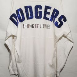 VICTORIA SECRET PINK MLB COLLECTION CUTE COLLEGIATE LOS ANGELES DODGERS BLING VARSITY CREW WOMENS SIZE L$59Huntington Park, CA